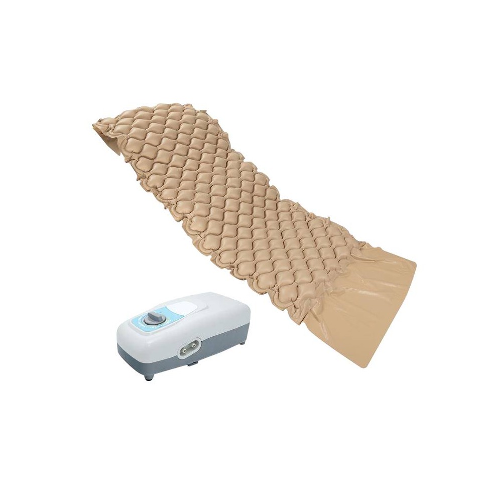 Colchão anti – escaras com pressão alternada e regulação manual, conta com células de ar que enchem e esvaziam em ciclos alternados, ativando a circulação sanguínea do paciente, prevenindo o aparecimento de úlceras de pressão (escaras grau I).